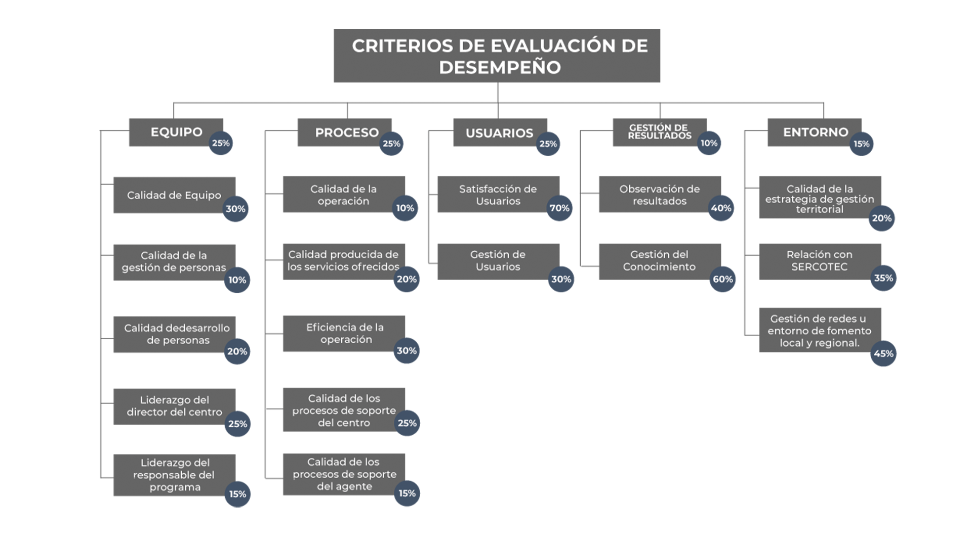Este puntaje será calculado en base al siguiente diagrama de ponderaciones y criterios de evaluación: