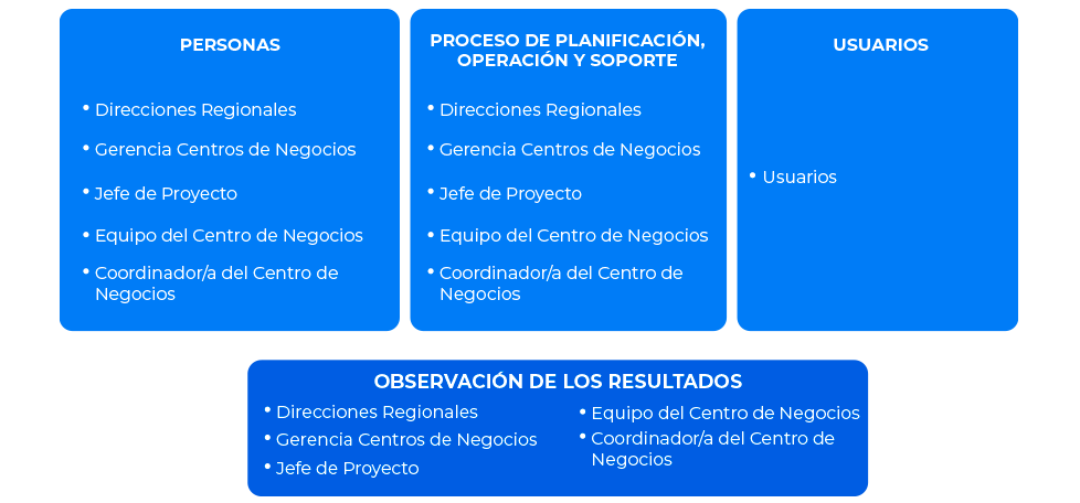 - Coordinadores de Centros de Negocios y Jefes de proyecto.